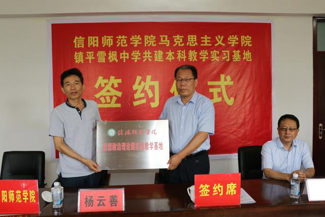 6月13日,信阳师范学院永利集团官网与南阳镇平一高中举行共建本科教学实习基地签约仪式。该校党总支书记魏书旭、校长李云杰等人出席会议。镇平一高以其先进的教育理念、现代化的办学条件、系统科学的学校管理、高水平的师资队伍和一流的教育教学质量,被社会各界赞誉为“豫西名校”。