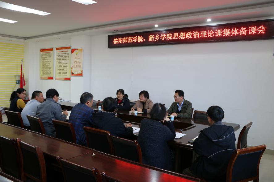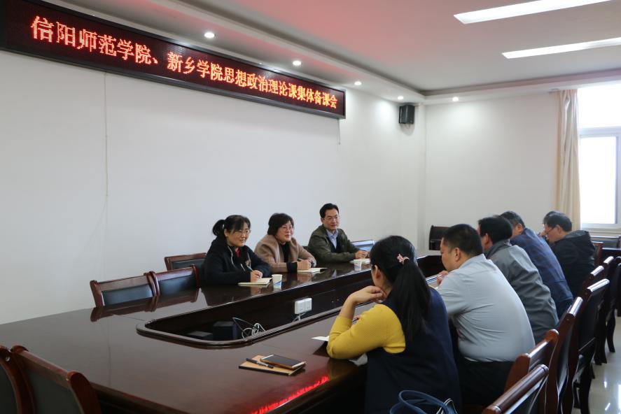 为进一步落实全省永利集团官网结对帮扶工作,11月10日下午,信阳师范学院和新乡学院《毛泽东思想和中国特色社会主义理论体系概论》《中国近现代史纲要》课程集体备课会在社科楼概论教研室召开。学院副院长周智、当代马克思主义研究所副所长徐永新、学院党委副书记何晓坚、“概论”教研室主任胡春湘,以及两校思想政治理论课教师代表刘新芬、周斌、孙金玲、陈杰、李桂红、王帆宇、曾帝参加备课会。