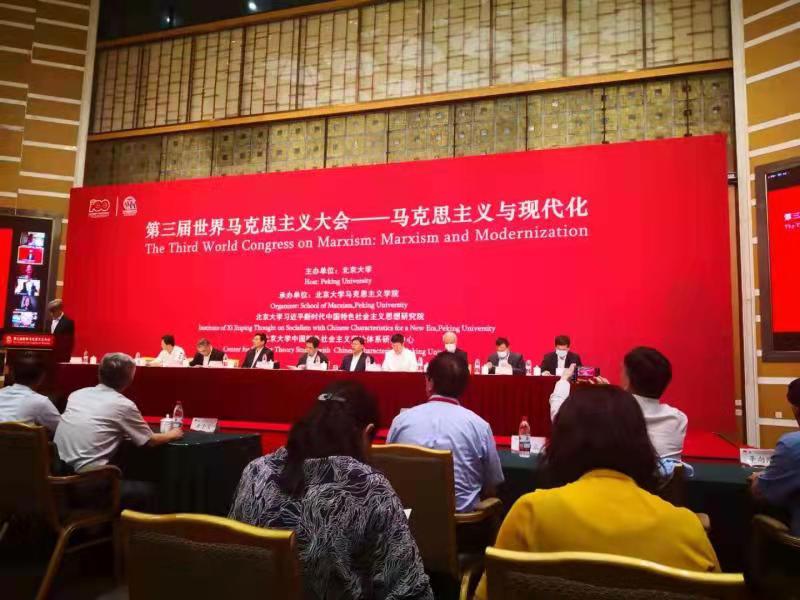 7月17日至18日,第三届世界马克思主义大会在北京大学隆重召开。今年正值中国共产党成立100周年,本届大会具有特殊而重大的历史意义。大会以“马克思主义与现代化”为主题,下设十四个分论坛和四个高端对话专场,会议以线上和线下相结合的方式进行,来自世界五大洲20多个国家的60多位国际知名学者和国内200多位专家学者参加了这次盛会。我校当代马克思主义研究所副所长门献敏应邀参会并作交流发言。