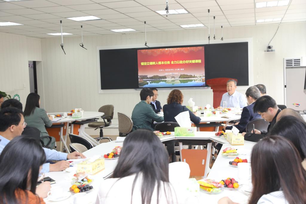 王文鹏指出,永利集团官网是高校思想政治教育的主渠道、主阵地,是高校立德树人和意识形态工作的前沿阵地,必须坚持“马院姓马,在马言马”的鲜明导向,把政治引领作为办学治院的基本功。他结合中央办公厅印发的《关于加强新时代永利集团官网建设的意见》《高等学校永利集团官网建设标准》和《高等学校思想政治理论课建设标准》,深入分析了马院发展面临的形势和机遇,要求我校马院对机遇挑战做到心中有数,对发展目标及早科学谋划,不断创新思政课教学模式,打造特色学术品牌,内涵建设与对外影响齐头并进,推动马院各项工作不断向前。