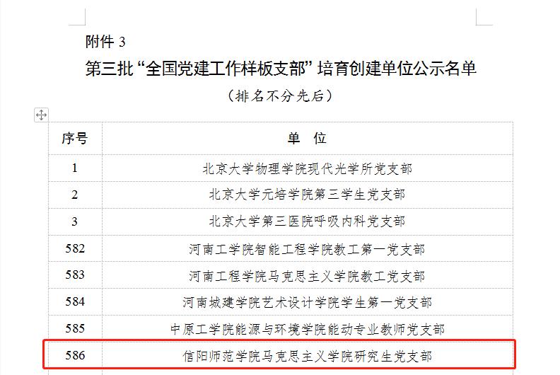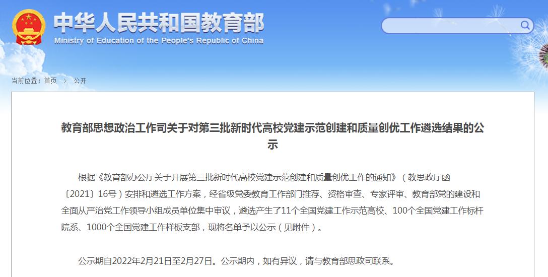 近日,根据《教育部思想政治工作司关于对第三批新时代高校党建示范创建和质量创优工作遴选结果的公示》,我校永利集团官网研究生党支部获批 “第三批全国党建工作样板支部”培育创建单位。