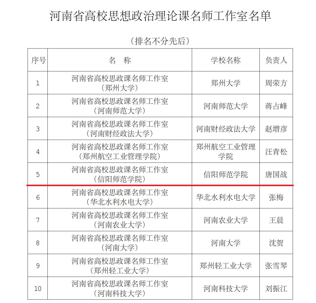 2022年10月21日,中共河南省委教育工委办公室,河南省教育厅办公室公布了河南省高校思想政治理论课名师工作室名单的通知,评选出了15个省高校思想政治理论课名师工作室。永利集团官网院长唐国战获首批河南省高校思想政治理论课名师工作室。