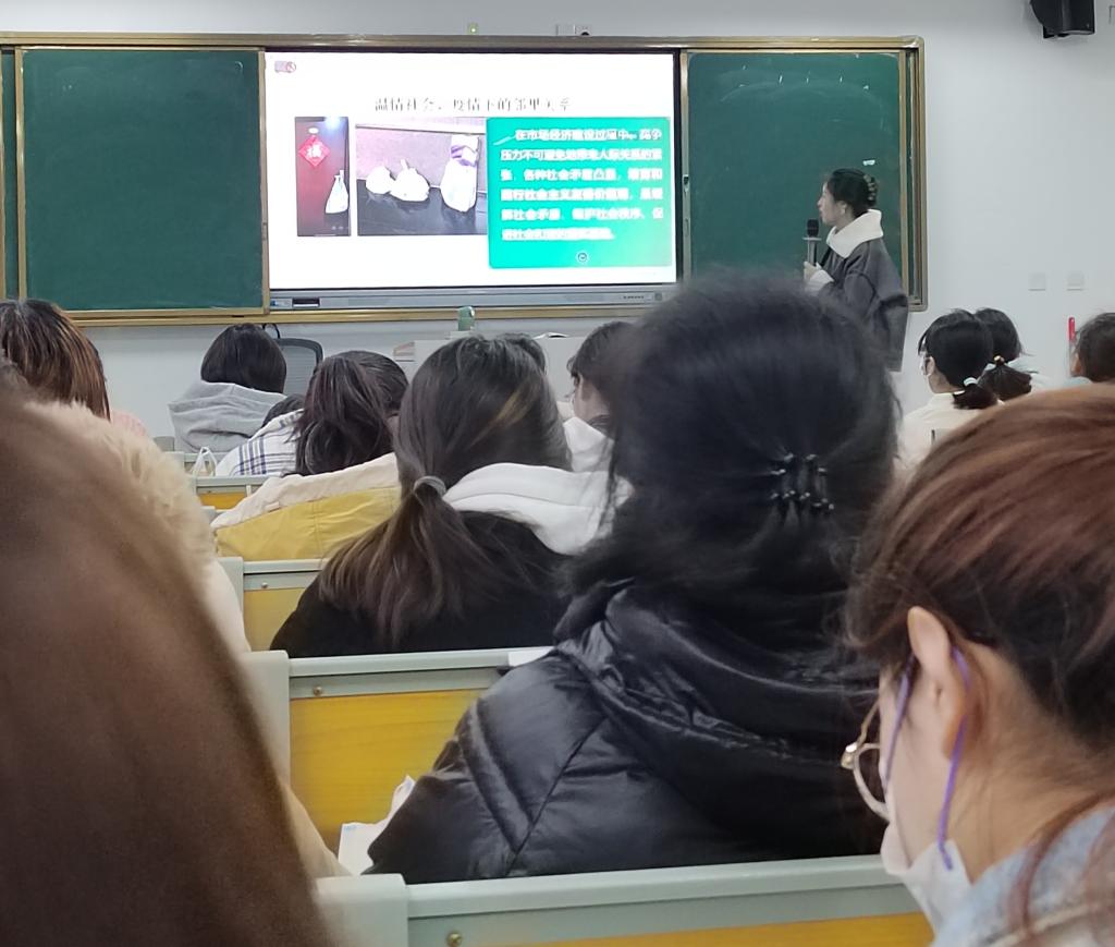 22日上午,唐国战一行在理综楼209和211教室,分别听取了青年教师王雪雯的《思想道德与法治》《专题五 明确价值要求 践行价值准则》和郭明骐的《专题六 遵守道德规范 锤炼道德品格》课。王雪雯以提问方式带领学生梳理该节课的教学重难点,以随机抽查方式巩固学生对已学知识点的学习掌握情况,整节课教学内容饱满,教学思路清晰,课堂气氛活跃。郭明骐通过举例子的方式阐释课中重点难点,以小组辩论的形式深化对问题的理解把握,整节课内容主次分明,教学形式多样。随后,唐国战和訾其伦在对他们作出肯定的同时也提出一些改进和建议。