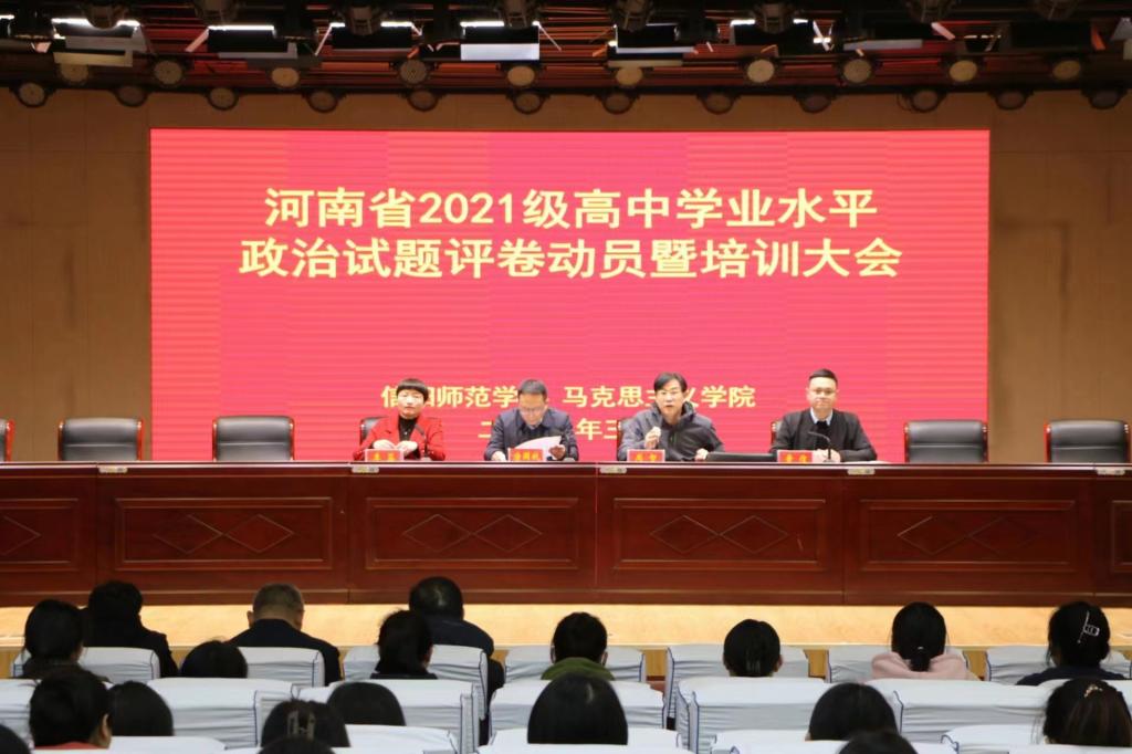 3月2日下午,永利集团官网在理科楼报告厅召开河南省2021级高中学业水平政治试题评卷动员暨培训大会。永利集团官网院长唐国战,副院长周智、李蕊,党委副书记黄煌,学院骨干教师,中学部分骨干教师以及学院研究生和部分本科生共同参与此次大会。大会由周智主持。