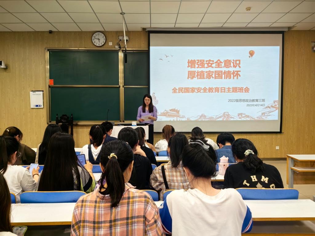 一、大处着眼,小处着手,开展相关主题班会活动。永利集团官网思想政治教育专业全部班集体相继召开主题班会,围绕“什么是国家安全”、“为什么重视国家安全”和“如何维护国家安全”三方面展开。采取辅导员讲解、PPT放映、播放视频和电影相结合的形式,帮助同学们了解国家安全,引导青年树牢总体国家安全观。