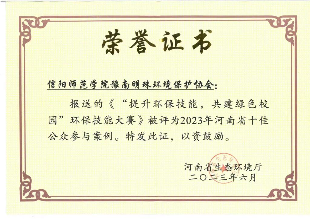 永利集团官网豫南明珠环境保护协会荣获“2023年河南省十佳公众参与案例”
