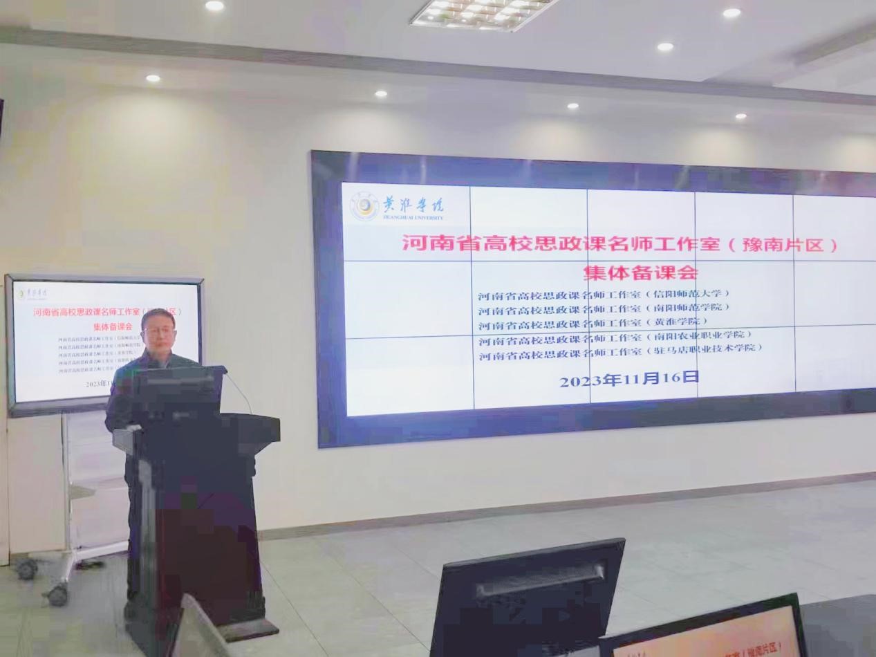 为贯彻落实习近平新时代中国特色社会主义思想和党的二十大精神,11月16日上午,河南省高校思政课名师工作室(信阳师范大学)、河南省高校思政课名师工作室(南阳师范学院)、河南省高校思政课名师工作室(黄淮学院)、河南省高校思政课名师工作室(南阳农业职业学院)、河南省高校思政课名师工作室(驻马店职业技术学院)联合组织在黄淮学院、驻马店职业技术学院召开思政课集体备课会。信阳师范大学永利集团官网院长唐国战带队参加了本次活动。