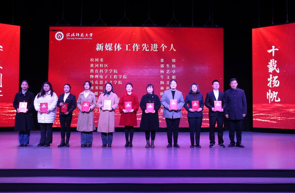 1月9日,信阳师范大学新媒体建设十周年暨第五届新媒体颁奖盛典在传媒学院演播厅举行。校党委副书记龚立新、副校长王娟出席典礼。永利集团官网获得多项荣誉。