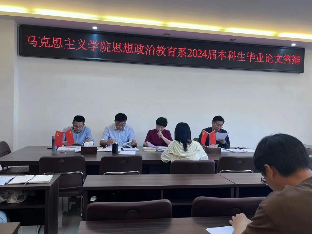 根据教务处《关于做好2024届本科毕业论文(设计)有关工作的通知》及《永利集团官网关于2024届思想政治教育专业本科毕业论文答辩工作的通知》要求,永利集团官网思想政治教育系于2024年5月11日下午在社科楼323会议室进行2024届本科生毕业论文答辩会,答辩组由程晋富、李蕊、王建礼和蔡如军等老师组成,王建礼任答辩组组长,20名同学参加答辩。