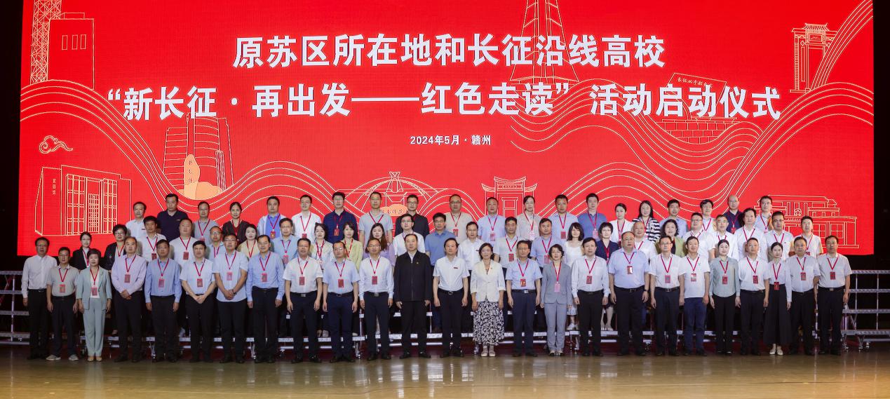 在中央红军长征出发90周年、习近平总书记考察赣南老区5周年之际,5月20日,由赣南师范大学、延安大学、海南师范大学、湖北师范大学、信阳师范大学、江西理工大学等17所高校联合发起的原苏区所在地和长征沿线高校“新长征·再出发——红色走读”活动启动仪式在赣南师范大学举行。原苏区所在地和长征沿线高校分管校领导、党委宣传部、学工部、永利集团官网负责同志,瑞金中央革命根据地纪念馆、于都中央红军长征集结出发地等历史博物馆负责同志共计1000余人参加仪式。仪式由赣南师范大学党委副书记刘民主持。我校永利集团官网院长唐国战、《中国近现代史纲要》教研室主任陈杰、分团委书记陶青青受邀参加本次活动。