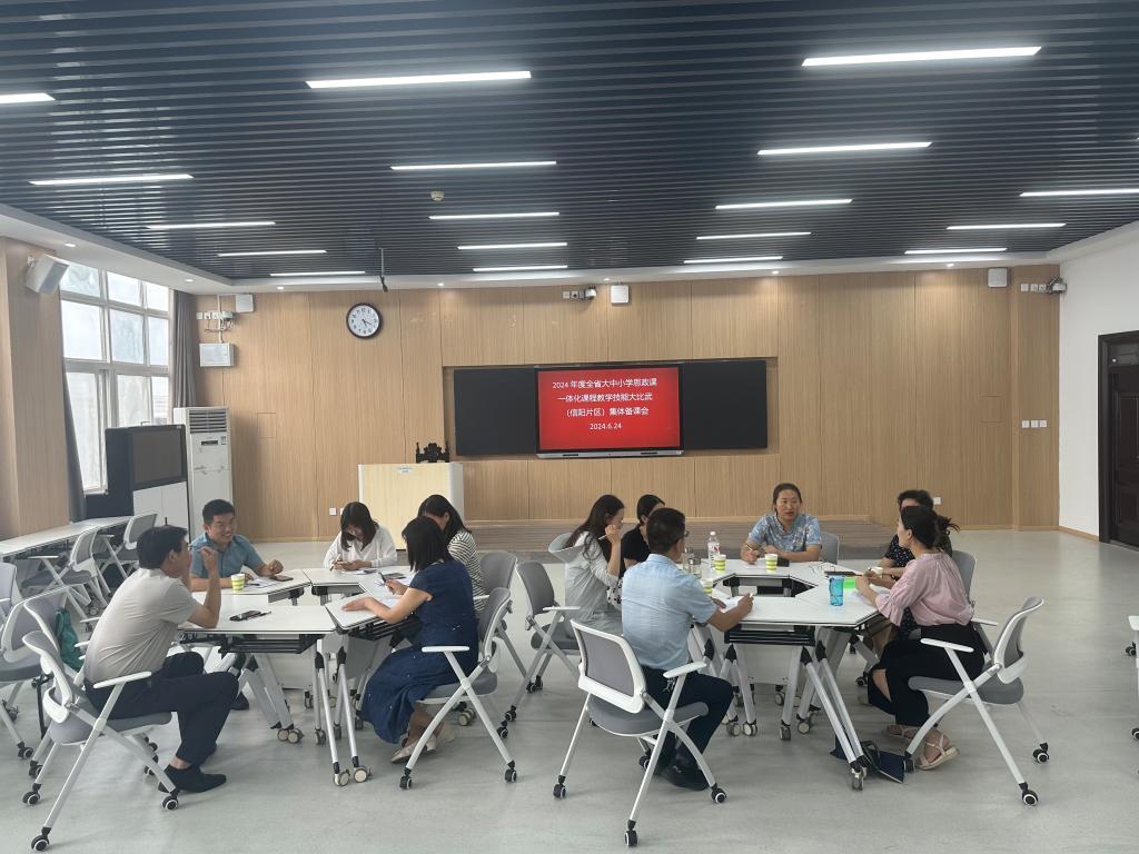 6月24日下午,信阳片区大中小学思政课一体化课程教学技能“大比武”集体备课会在信阳师范大学社科楼516举行。参加此次集体备课会的有部分信阳高校马院院长、市教体局思政科及市基础教育教研室部分专家和参赛选手。会议由永利集团官网副院长周智主持。