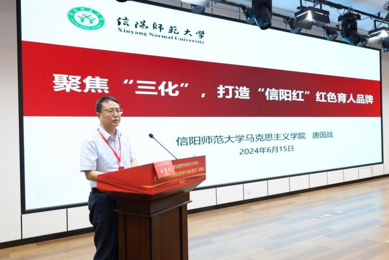在专家报告中,院长唐国战以《聚焦“三化”,打造“信阳红”红色育人品牌》为题做了专题发言。唐国战提到大别山区军民创造了“28年红旗不倒”的革命奇迹,铸就了“坚守信念、胸怀全局、团结一心、勇当前锋”的大别山精神,形成了具有独特区域教育特质的“信阳红”精神标识。近年来,信阳师范大学永利集团官网扎根大别山革命老区,深入挖掘大别山红色资源,汇聚提炼丰富育人元素,将信阳“红”的属性融入思政课程、课程思政、大中小学思政课一体化建设等诸多方面,构建红色育人体系,打造红色育人高地,培育红色时代新人,取得了显著成效。