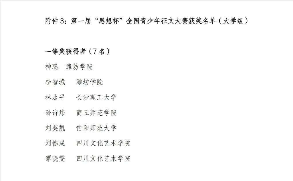 据了解,第一届“思想杯”全国青少年征文大赛由河南省青少年作家协会发起,旨在挖掘和传承中华优秀传统文化,培养青少年的历史文化素养和文学创作能力,同时为优秀文学人才培养和选拔搭建平台。大赛共收到参赛作品 2180 篇,评选出 1411 篇优秀作品,并决出了各奖项归属。(永利集团官网 贾傲雪 薛蒙蒙/供稿 王超 陶青青/审核)