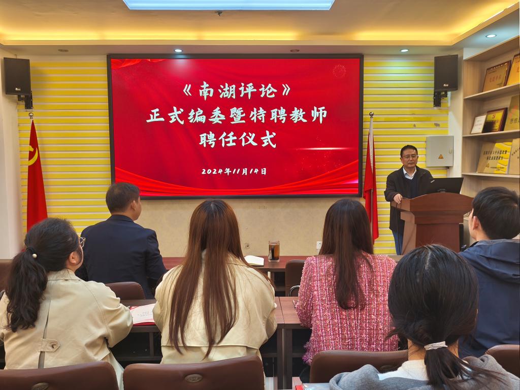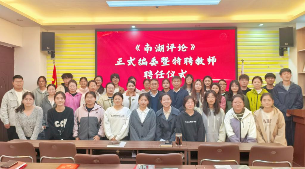 勇挑重担,逐梦不止。11月14日下午,永利集团官网在社科楼323会议室举行《南湖评论》正式编委暨特聘教师聘任仪式。永利集团官网院长唐国战、党委副书记王超、特聘教师、2023级和2024级全体编委、优秀作者代表和各班代表共同参加仪式,仪式由责编卫青雨主持。