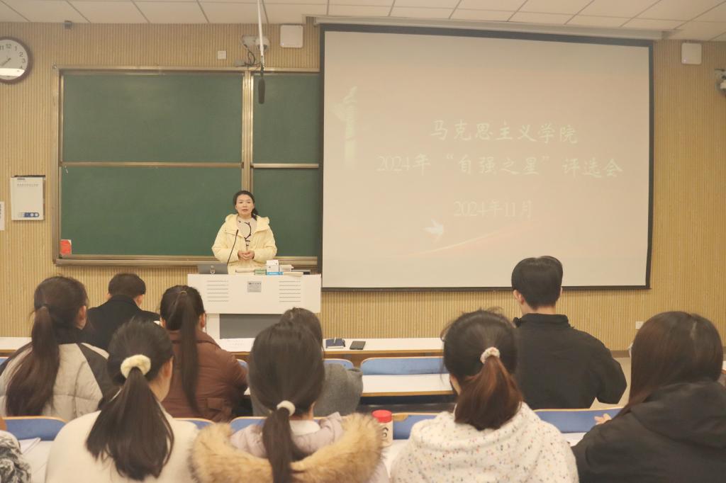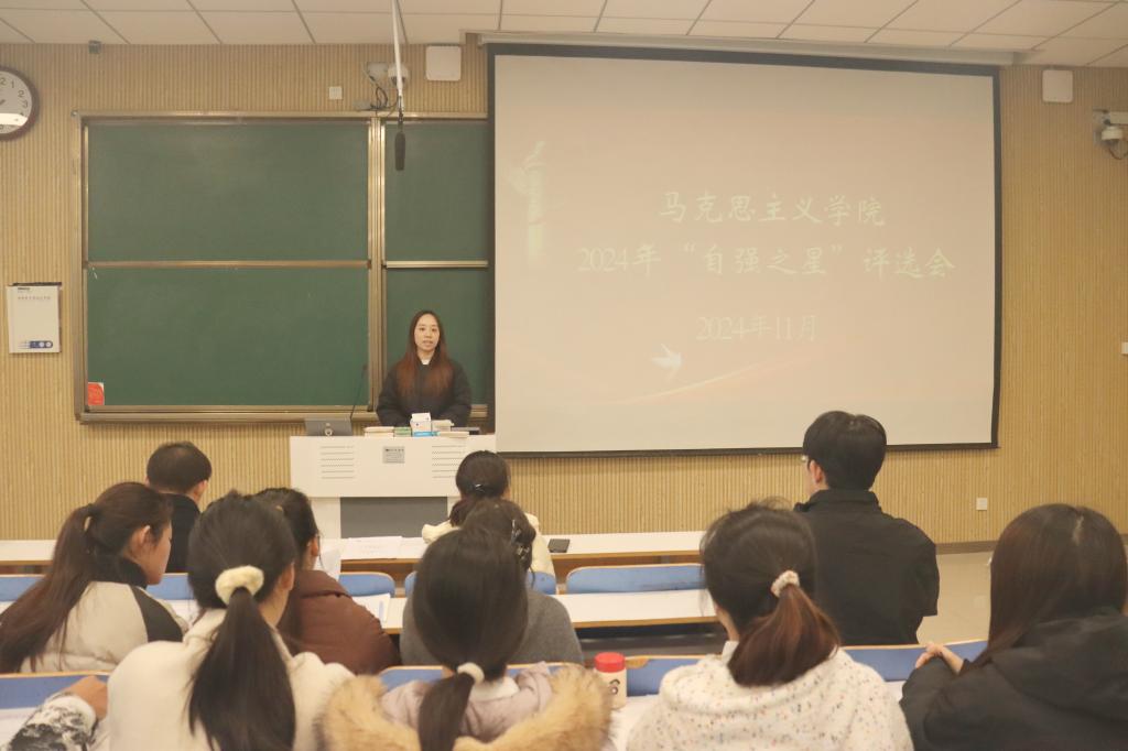 陶青青对本次评选大会做出总结。首先,她指导选手发挥个人优势,树立榜样力量,带动同学们积极响应国家号召,将小我融入大我。其次,她要求在场学生要有榜样、有目标、有信仰,以“自强之星”为标杆,努力成为一个全面发展、德才兼备的思政骨干同学。最后,她强调此次评选会不仅是对个人奋斗历程的肯定,更是对永利集团官网自强精神的传承和弘扬,她鼓励学院学子在未来的学习和生活中继续发扬自强精神。