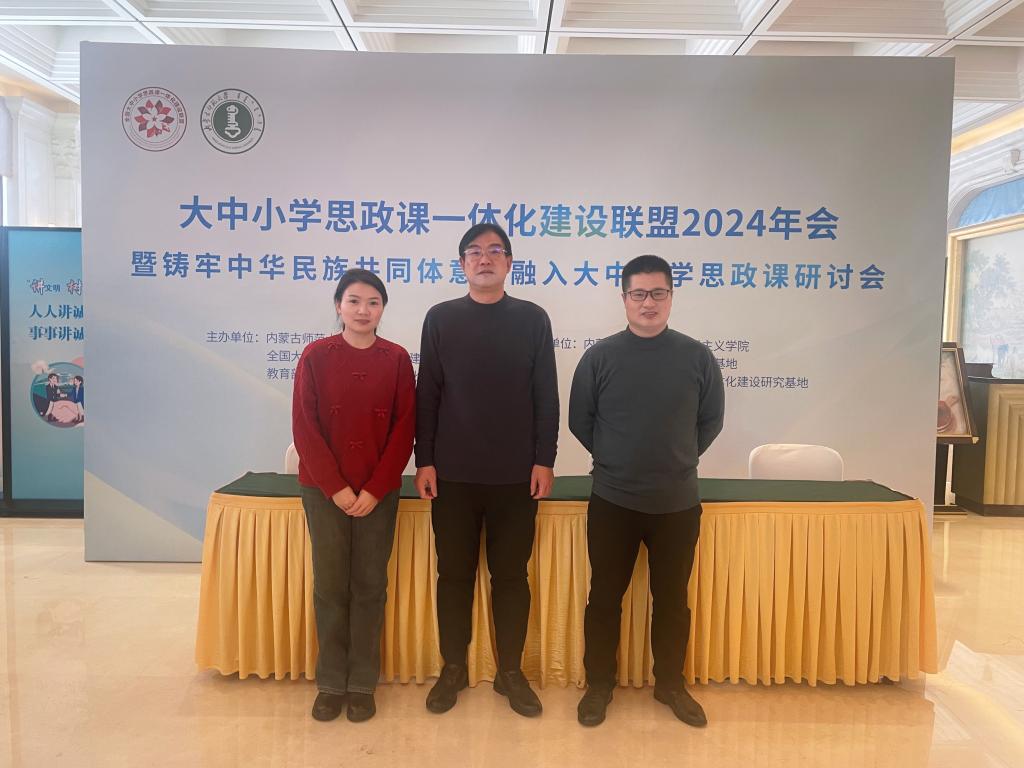 2024年11月30—12月2日,全国大中小学思政课一体化建设联盟2024年会暨铸牢中华民族共同体意识融入大中小学思政课研讨会在内蒙古呼和浩特市召开,年会由内蒙古师范大学、全国大中小思政课一体化建设联盟、大中小学思政课共同体(内蒙古)主办,由内蒙古师范大学永利集团官网、内蒙古思想政治教育研究基地、内蒙古大中小学思政课一体化建设研究基地承办。永利集团官网副院长周智带队参加本次年会。