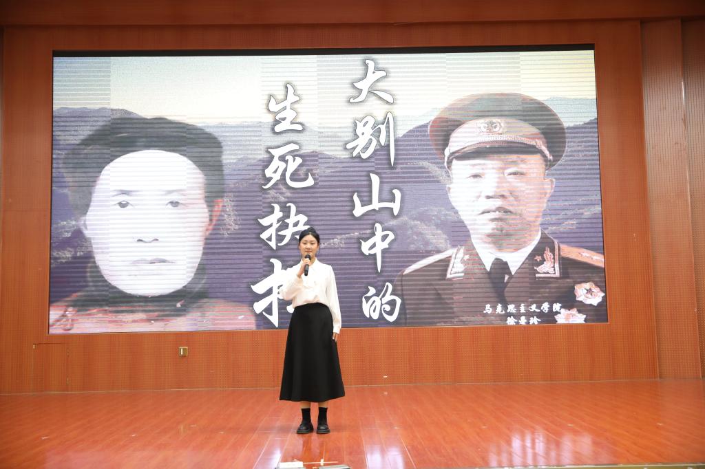 在学院选拔、初赛比拼时,徐曼珍深入挖掘发生在大别山这片红色热土上的价值观故事,并结合自身专业特色,精心润色,反复打磨,在指导老师的带领下为决赛积累丰富经验。决赛中,她以“大别山中的生死抉择”为题,紧扣爱国主义精神,聚焦发生在一位战功显赫的将军和一位普通农村大娘之间一个有关生死抉择的感人故事,通过激情澎湃的讲述和真挚感情的流露,生动演绎出红军战士和老百姓之间的生死与共的军民鱼水情。通过这一感人至深的故事向我们传递了拥军爱国、军民一家的价值观,生动诠释了社会主义核心价值观的基本内涵,号召广大青年热爱祖国、热爱人民、亲军爱军、无私奉献,树立正确的价值观,听党话跟党走,争做新时代好青年。