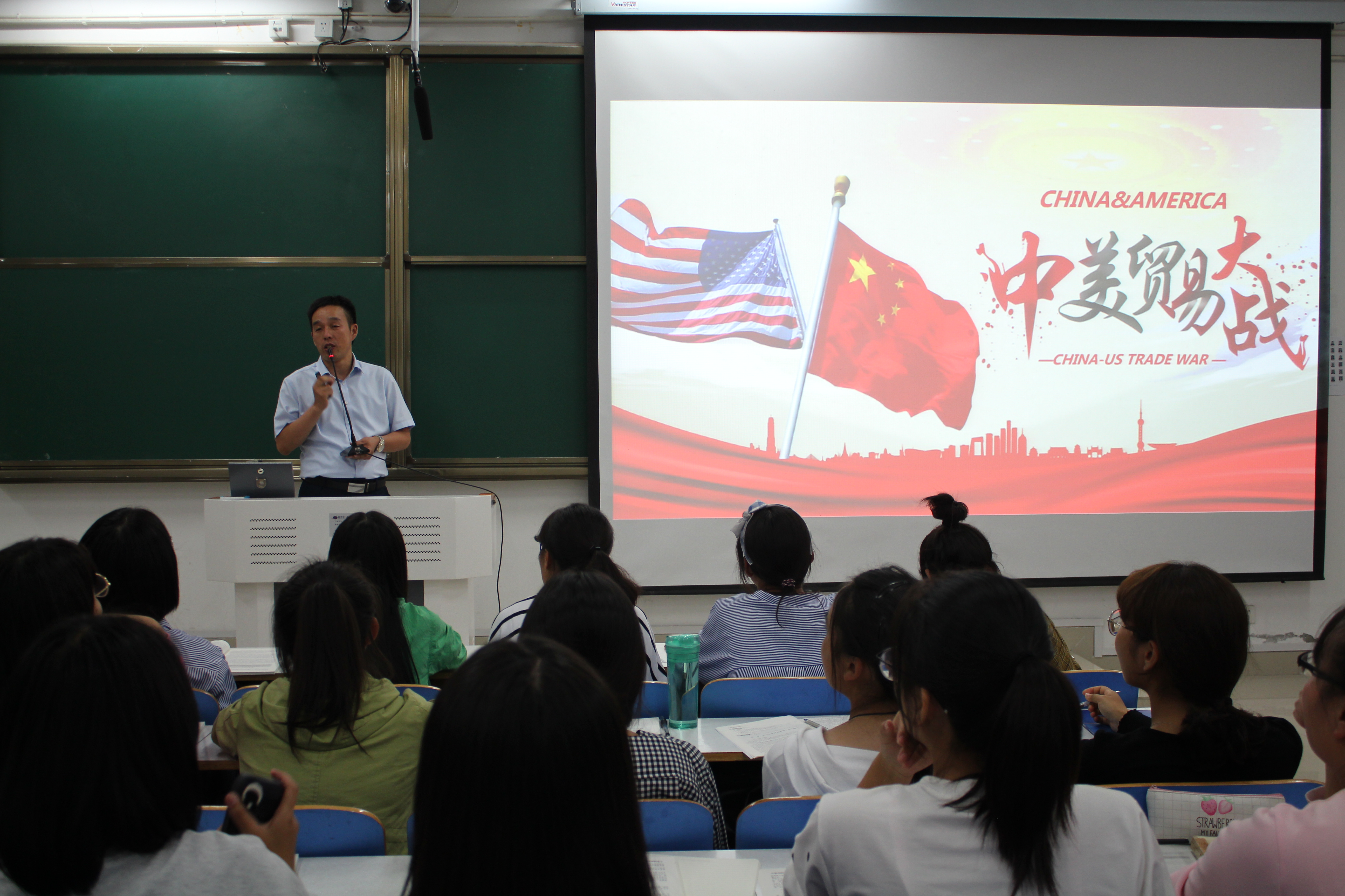 为贯彻落实教社科〔2018〕1号文件,帮助永利集团官网学子正确认识新时代国内外形势,深刻领会党的十八大以来党和国家事业取得的历史性成就、发生的历史性变革、面临的历史性机遇和挑战,9月28日、9月29日晚,永利集团官网王帆宇副教授在社科楼514、516教室为永利集团官网全体学生讲授了题为“中美贸易大战”的形势与政策课。