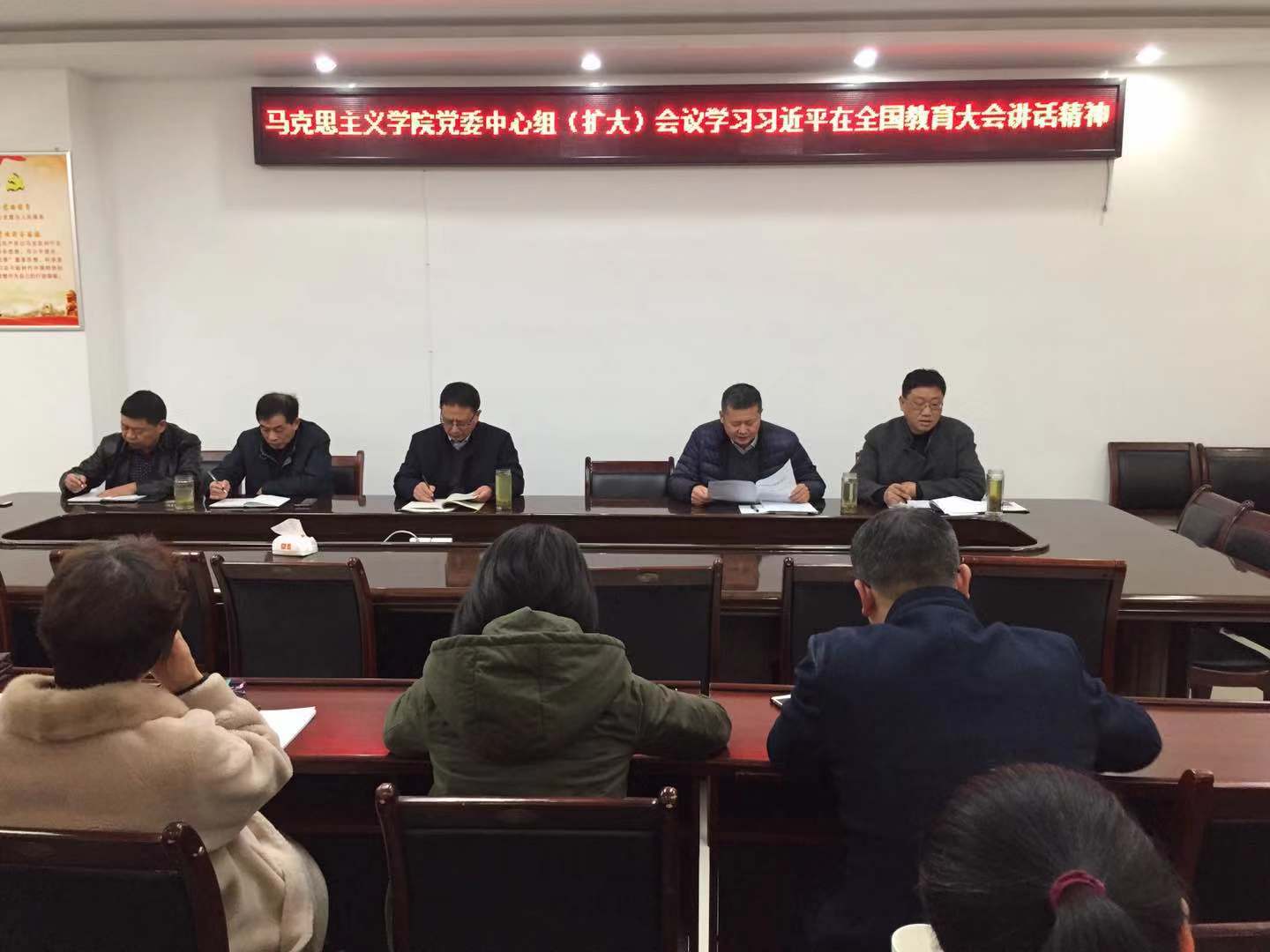 12月4日下午,永利集团官网在社会科学楼323会议室召开党委理论学习中心组学习(扩大)会议,传达学习全国教育大会精神尤其是习近平总书记在大会上的重要讲话精神,安排部署贯彻落实工作。全体教职工参加了本次会议。会议由学院党委书记唐国战主持。