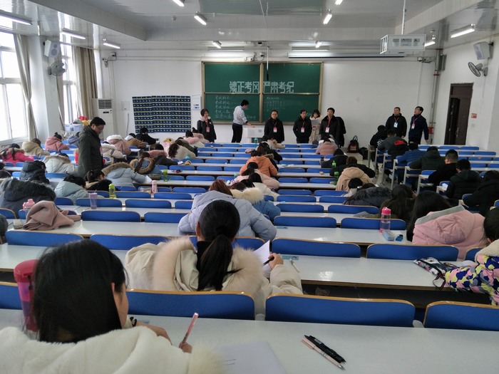 永利集团官网历来重视期末考务工作,教风与考风优良。2日下午,院长杨云善、党委书记唐国战、教学副院长程晋富等学院期末考务领导小组成员来到社科楼514、516考场巡视考务,认真查看考场环境,检查考生证件,了解考生答题情况,并对考场布置、考试纪律以及监考工作等均进行了细致检查。