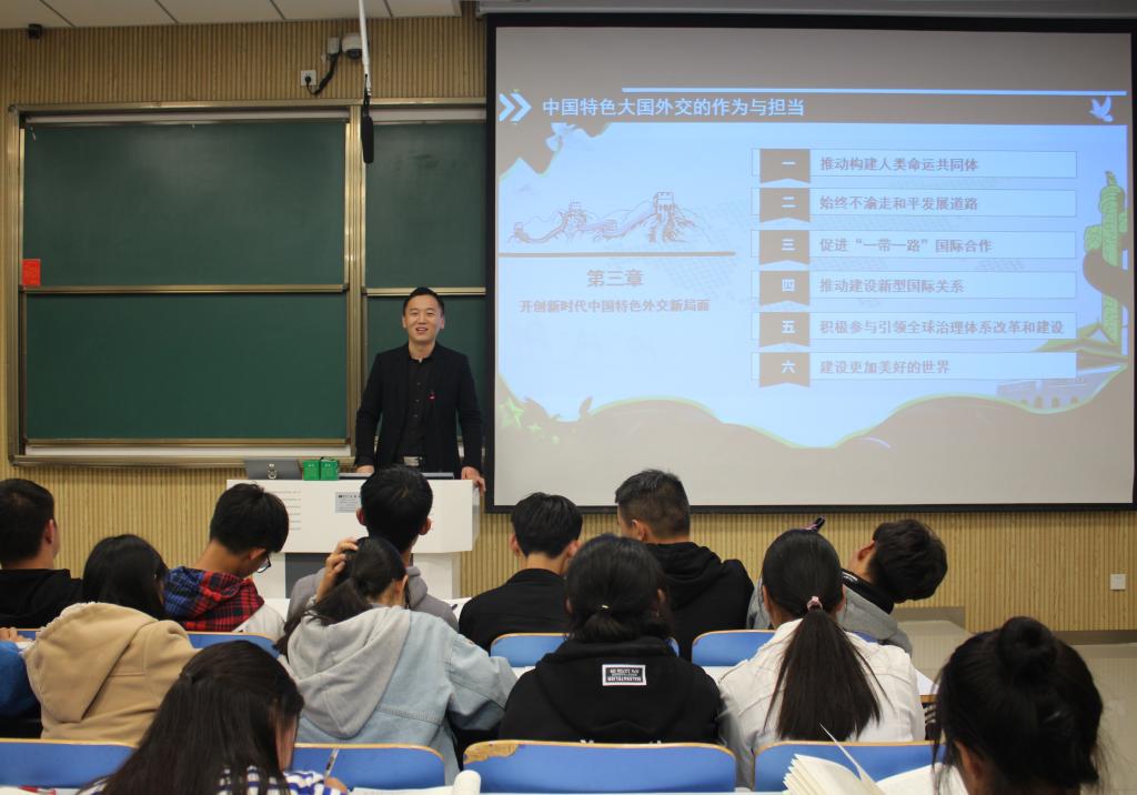 曹栋以中国特色大国外交的作为与担当为题,着重从中国外交历史性成就、中国外交的优良传统和鲜明特色、开创新时代中国特色外交新局面三部分阐述中国外交的作为与担当。他谈到,新中国成立以来,我国通过多边外交积极走向国际舞台,彰显大国担当。随后,他围绕独立自主是中国外交的基石、天下为公是中国外交的胸怀、公平正义是中国外交的坚守等六个方面向同学们展示中国外交的优良传统和鲜明特色。最后,曹栋以两个思考题结束本次课程,并建议同学们做关心时政、与时俱进的新时代青年。