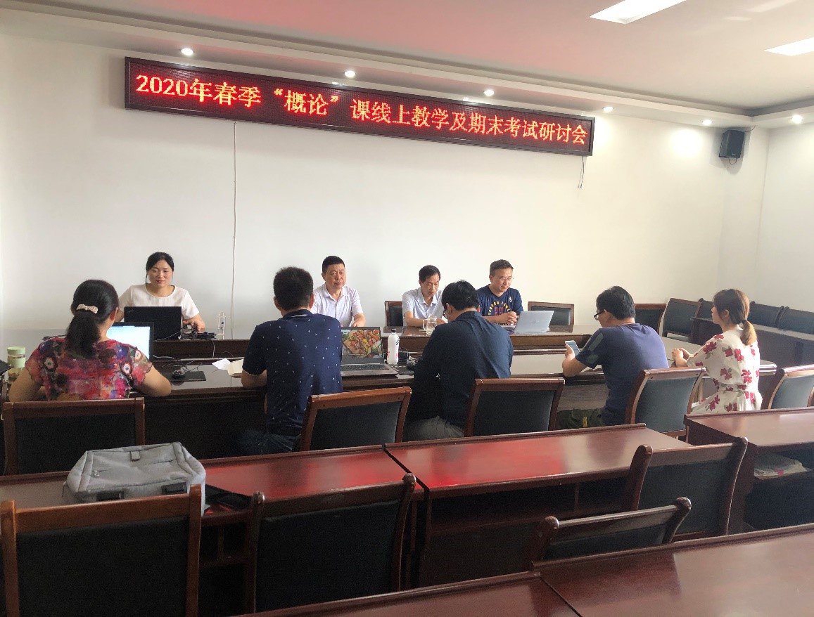 2020年春季学期接近尾声。为总结本学期线上教学经验,推进教法改革,7月9日,永利集团官网“概论”教研室举行本学期线上教学与期末考试研讨会。会议由教研室主任胡春湘主持。