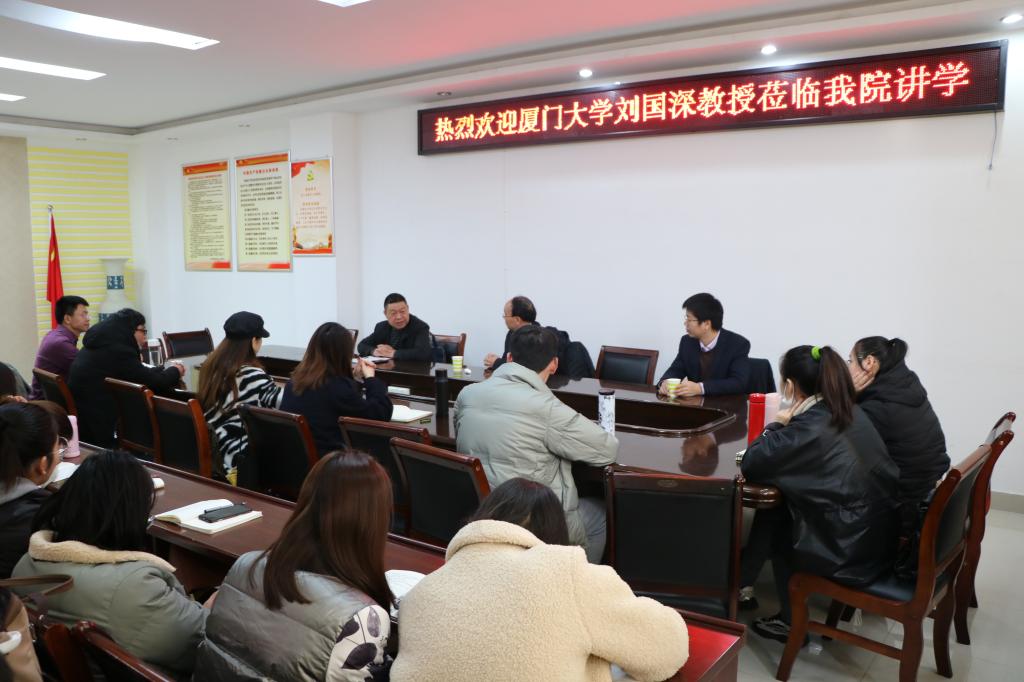 在专题讲座会上,刘国深围绕台湾问题的岛内因素、美国因素、大陆因素和时间因素四个维度对台湾问题局势和国家统一前景进行了深入地分析和阐释。他表示,两岸关系到今天已经走了“九十里路”,两岸在经济、文化等方面融合发展,形成了“你中有我”“我中有你”的局面。他强调,面对当前的两岸关系,我们要树立全局观念,理性地看待问题,对待台湾问题要有自信和定力,要设身处地从两岸人民共同利益上看台海局势。整场报告气氛活跃、案例生动、紧贴时政,刘国深教授以独特的战略思维,高深的理论素养,幽默风趣的语言为永利集团官网师生思考台湾问题,深入分析台海局势提供了全新思路和有益指导。会后,刘国深在社科楼323会议室,就国家社科基金项目申报、研究生论文写作等问题与我们院师生进行互动交流。