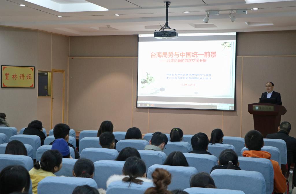 12月10上午,应永利集团官网和当代马克思主义研究所邀请,厦门大学刘国深教授在贤林讲坛作了题为“台海局势与国家统一前景——台湾问题的四度空间分析”的学术报告。当代马克思主义研究所副所长门献敏及学院百余名师生共同聆听此次报告。报告由门献敏主持。