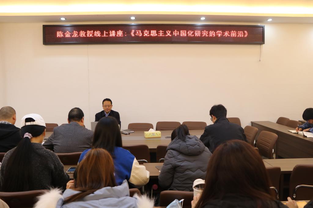 11月24日晚,应永利集团官网邀请,华南师范大学陈金龙教授在腾讯会议网络平台开展题为“马克思主义中国化研究的学术前沿”专题讲座。永利集团官网院长唐国战、当代马克思主义研究所副所长门献敏及部分师生共同聆听此次报告会。报告由唐国战主持。