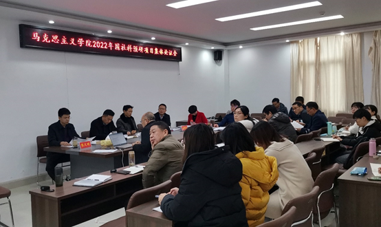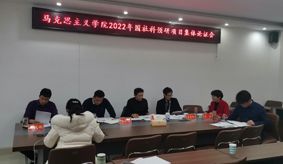 12月12日,永利集团官网在社科楼323会议室举办了 2022年度国社科预研项目集体论证会。论证会邀请社科处处长李军辉教授、副处长张义明教授以及社科专家金荣权教授、杨云善教授为评审专家,永利集团官网院长唐国战、党委书记朱四倍、副院长李蕊及30余位老师参加了本次论证会。论证会由李蕊主持。