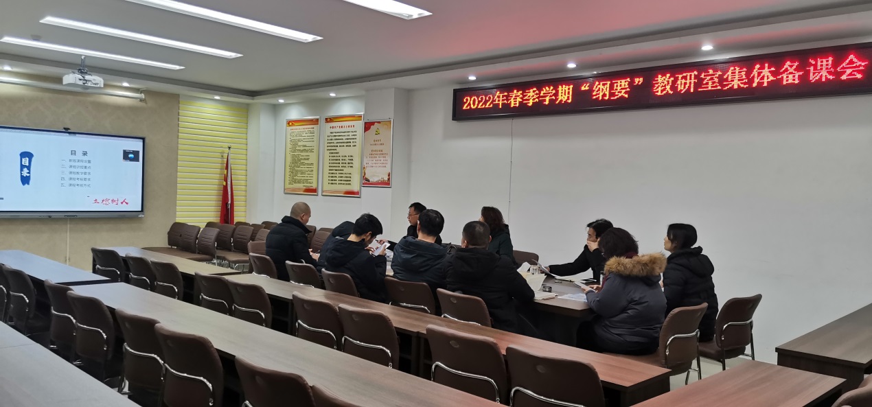 为做好开学第一课,弄通吃透新教材在章节、内容上的重大调整,2月18日上午,永利集团官网“纲要”教研室“2022年春季学期集体备课会”在学院会议室召开。学院教学副院长訾其伦、教学秘书张琳及“纲要”教研室全体老师参会。会议由教研室主任陈杰主持。