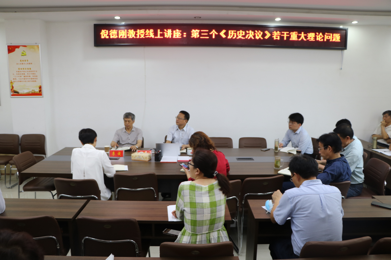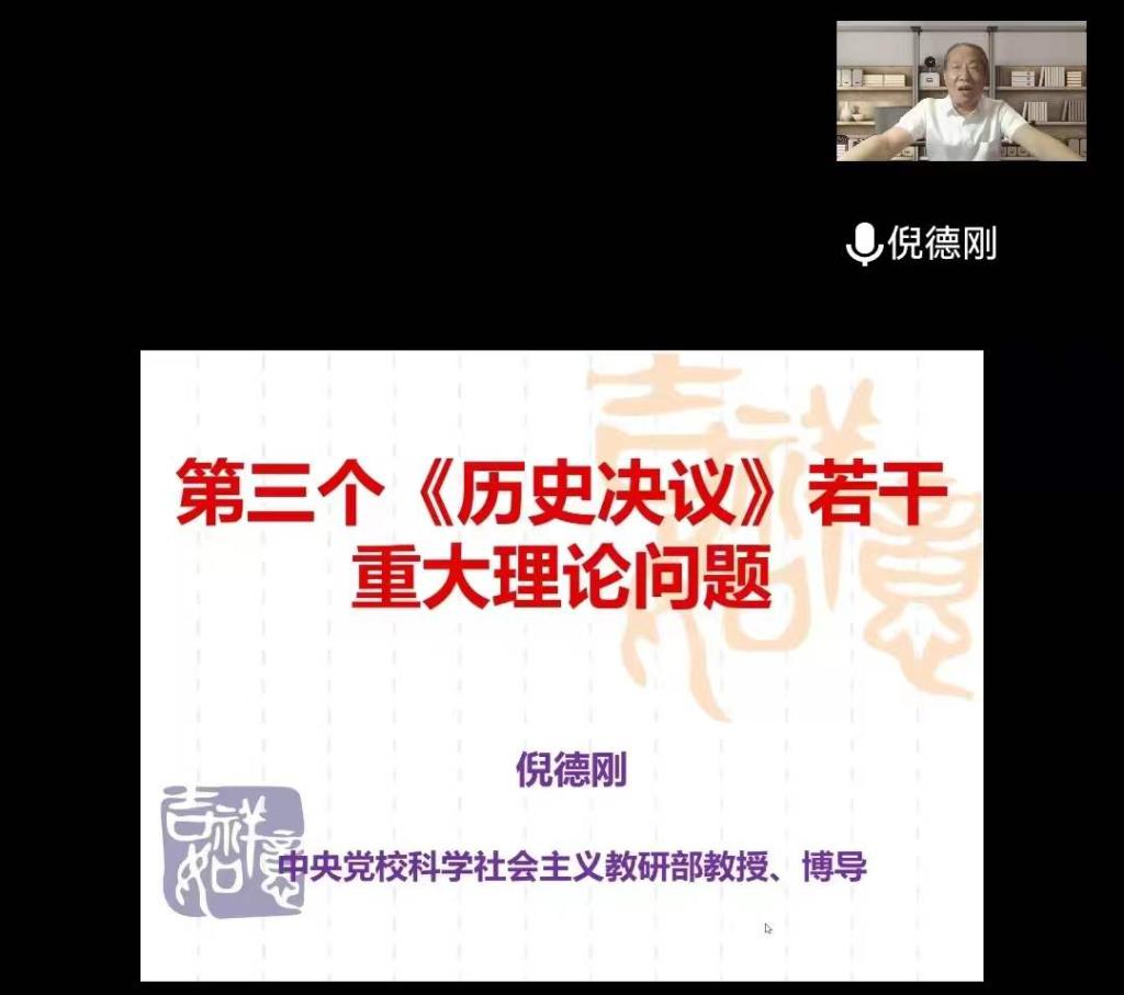 5月31日,应永利集团官网邀请,中共中央党校(国家行政学院)倪德刚教授在腾讯会议网络平台为我校师生作了题为“第三个《历史决议》若干重大理论问题”的专题讲座。信阳师范学院校长李俊教授亲临讲座现场,永利集团官网全体教师、研究生及部分本科生以集中或线上分散形式聆听了此次讲座。讲座由永利集团官网院长唐国战教授主持。