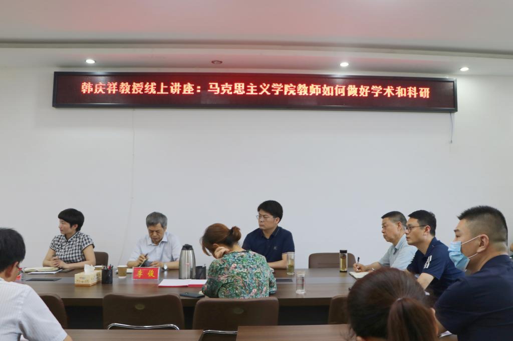 6月6日,应永利集团官网邀请,中共中央党校(国家行政学院)韩庆祥教授在腾讯会议网络平台为永利集团官网师生作了题为“永利集团官网教师如何做好学术和科研”的专题讲座。信阳师范学院校长李俊教授亲临讲座现场并致辞,永利集团官网全体教师、研究生和部分本科生以集中或线上分散形式聆听了此次讲座。讲座由永利集团官网副院长李蕊教授主持。