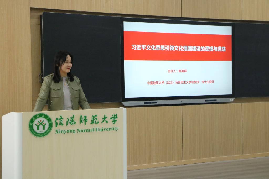 3月27日下午,中国地质大学(武汉)永利集团官网教授、博士生导师韩美群应邀在社科楼516会议室作了题为“习近平文化思想引领文化强国建设的逻辑与进路”的专题讲座。讲座由学院院长唐国战主持,学院师生代表到场聆听。