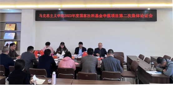 为进一步提升2023年度国家社科基金申报项目的论证质量,3月14日下午,永利集团官网在323会议室举行了2023年度国家社科基金申报项目的第二次集体论证会。本次集体论证会由信阳师范学院学报编辑部主任蔡宇宏教授、永利集团官网院长唐国战教授和永利集团官网厉有国教授担任评审专家,副院长李蕊教授主持,永利集团官网全体教师参与汇报及旁听学习。