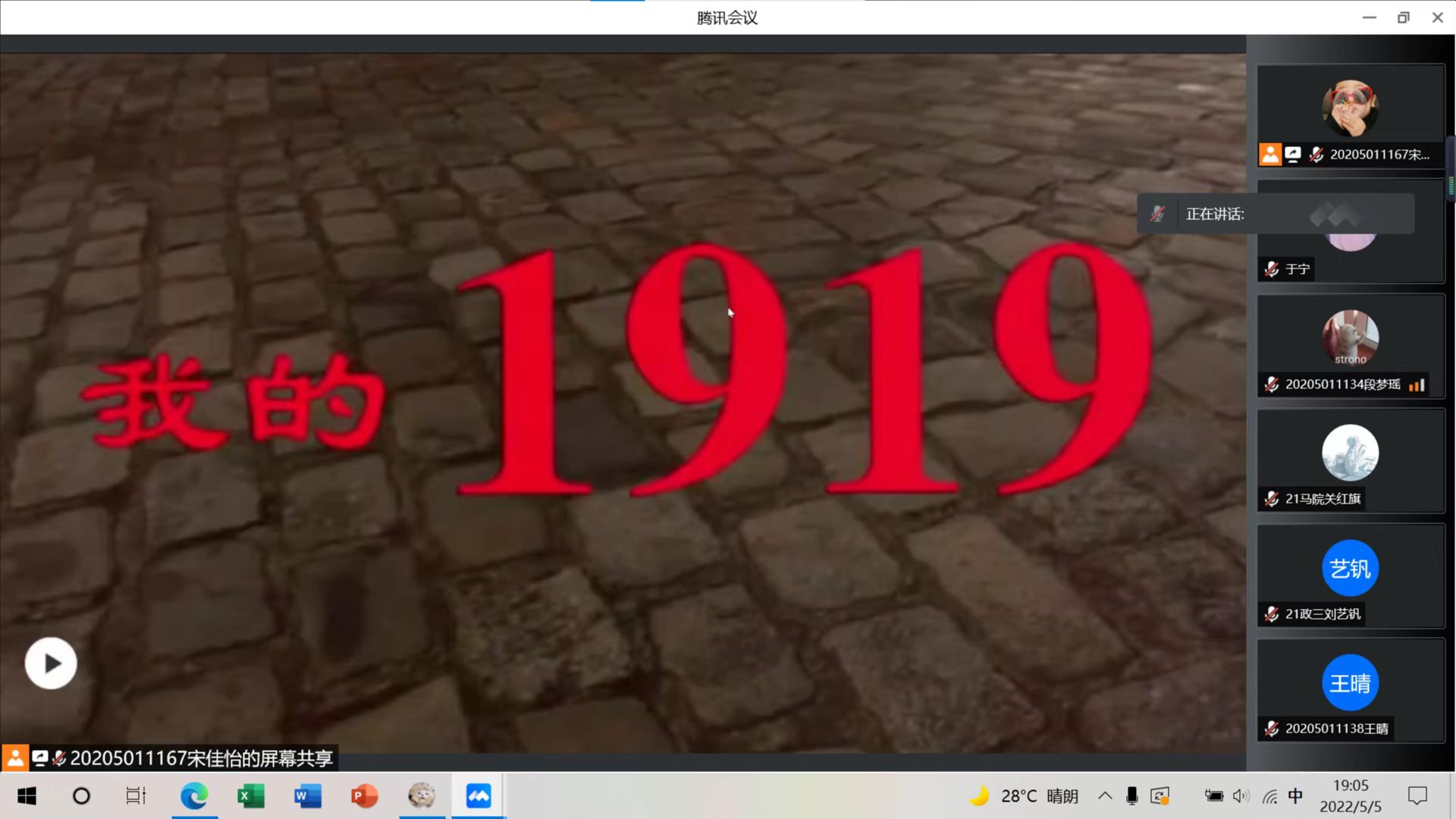 5月5日晚上,永利集团官网优秀青马工程学员们集体通过腾讯会议开展了第二次观影活动。活动由班长宋佳怡主持。