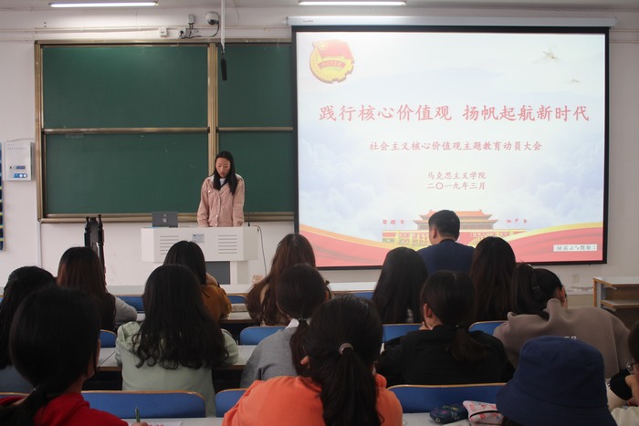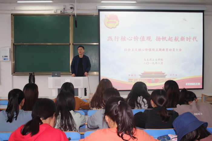 3月29日下午,永利集团官网于社科楼516教室召开了“践行核心价值观,扬帆起航新时代”的社会主义核心价值观主题教育动员大会。永利集团官网团委书记曹栋,主席团成员,及17、18级部分学生共同参加了动员大会。会议由分团委副书记肖妍杰主持。