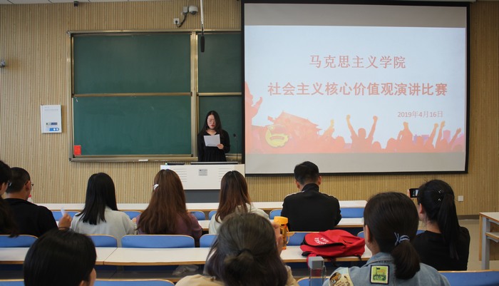 为了深入推进社会主义核心价值观教育,4月16日下午,永利集团官网在社科楼515教室成功举行社会主义核心价值观演讲比赛。永利集团官网分团委副书记肖妍杰、学生会副主席刘雅丹、陈思汝,2017级与2018级班委共同担任此次评委,永利集团官网部分学生观看了此次演讲比赛。比赛由袁紫薇主持。