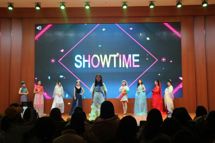 经过初赛、复赛选拔,十组选手入围决赛。本次比赛内容共分为三个部分:古风雅韵、时尚魅影、青春之歌。各参赛队依次登台展示她们独出心裁的服装。精辟的解说词让观众了解到作品的设计理念、创作特色、使用材料等方面的详细情况,自信大方、青春活力的走秀表演展现了她们独特新颖的服装设计,给同学们带来了一场极其难忘的视觉盛宴。比赛过程中穿插了有奖竞答、小品、歌曲、现场走秀环节,将现场氛围一次次推向高潮。其中,永利集团官网2017级参赛小组用旧蚊帐、废报纸等制成的服装作品“皎皎新华”,既体现了环保理念又不失时尚元素,获得了评委们的青睐,最终摘得桂冠。
