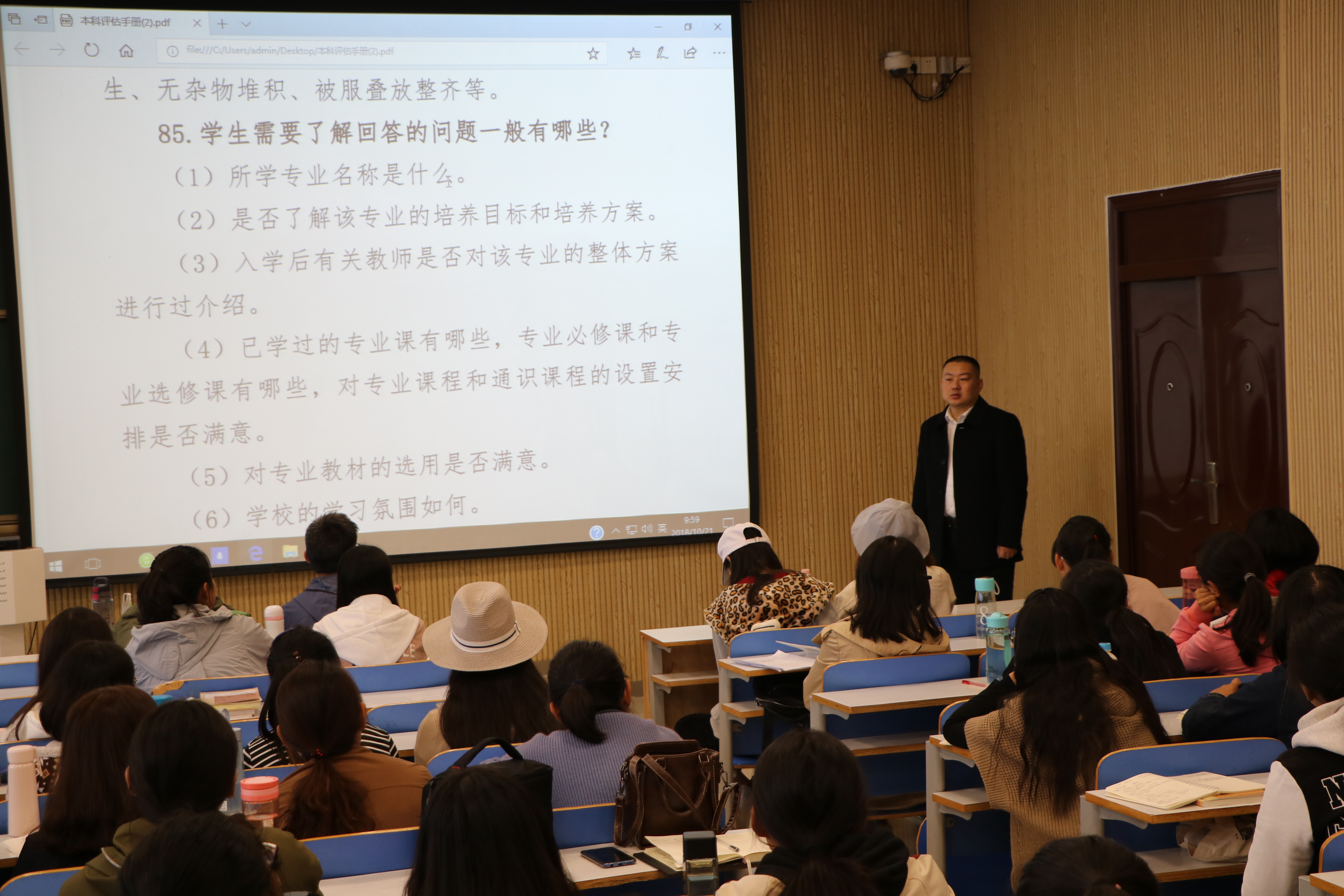 为迎接我校本科教学工作的审核评估,提高永利集团官网学生关心评估、了解评估、参与评估、支持评估的意识,10月21日上午,永利集团官网在社科楼416、514、515、517教室组织召开审核评估知识学习会。永利集团官网全体学生共同参与本次学习会。学习会由各班级负责人带领学习。