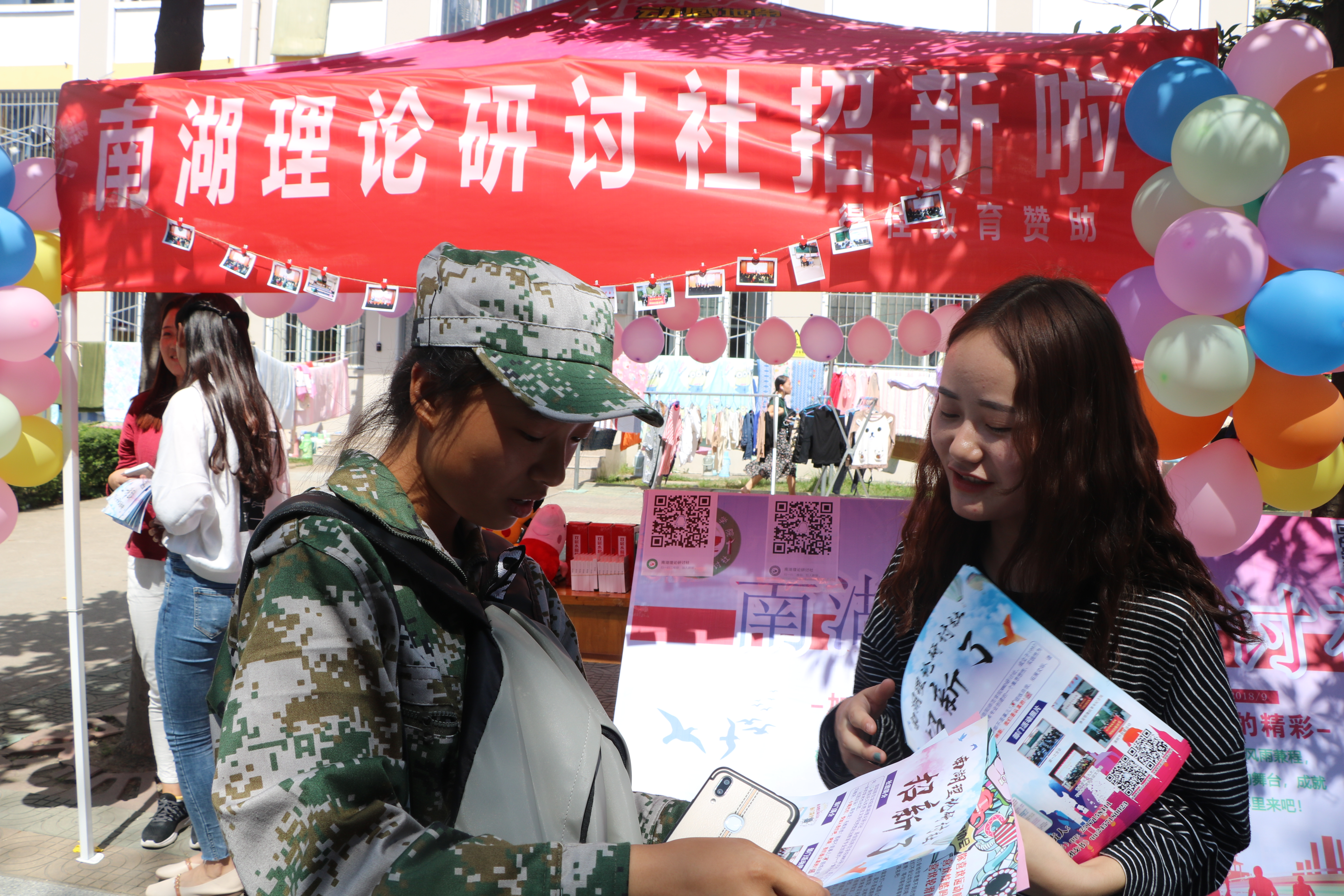 演绎社团魅力,谱写青春梦想。9月23日至9月25日,信阳师范学院2018-2019学年“百团大战”活动在学校思齐路拉开帷幕。永利集团官网考研服务社、豫南明珠环境保护协会和南湖理论研讨社积极参与此次社团纳新宣传活动。