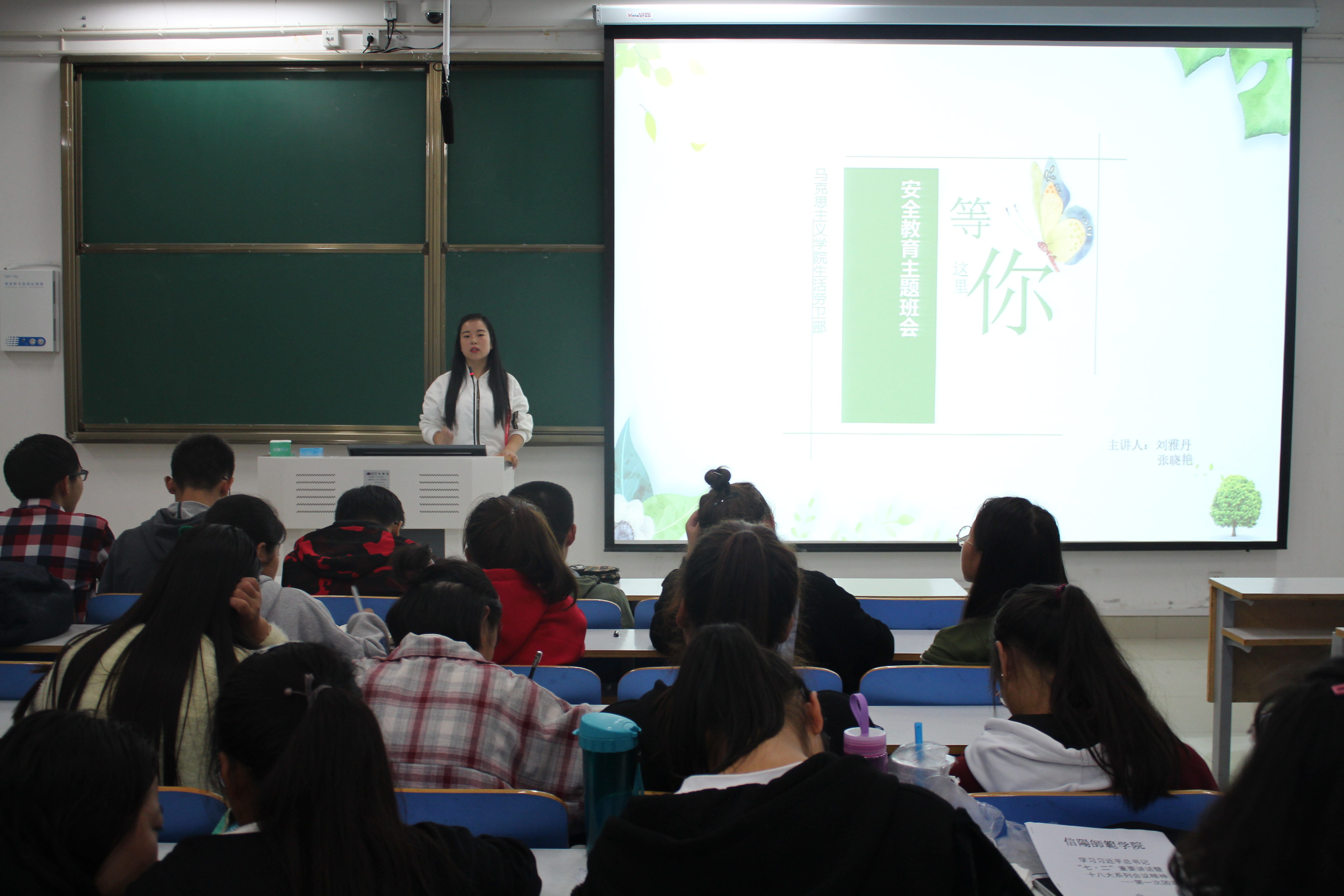为提高永利集团官网新生自我安全防范意识,10月15日晚,永利集团官网在社科楼516教室组织召开了题为“安全在我心中”的安全教育主题班会。学生会副主席常爽爽、薛文静,生活劳卫部上届负责人张威,现任负责人刘雅丹、张晓艳及2018级全体新生共同参加了此次主题班会。班会由生活劳卫部负责人刘雅丹和张晓艳主持。