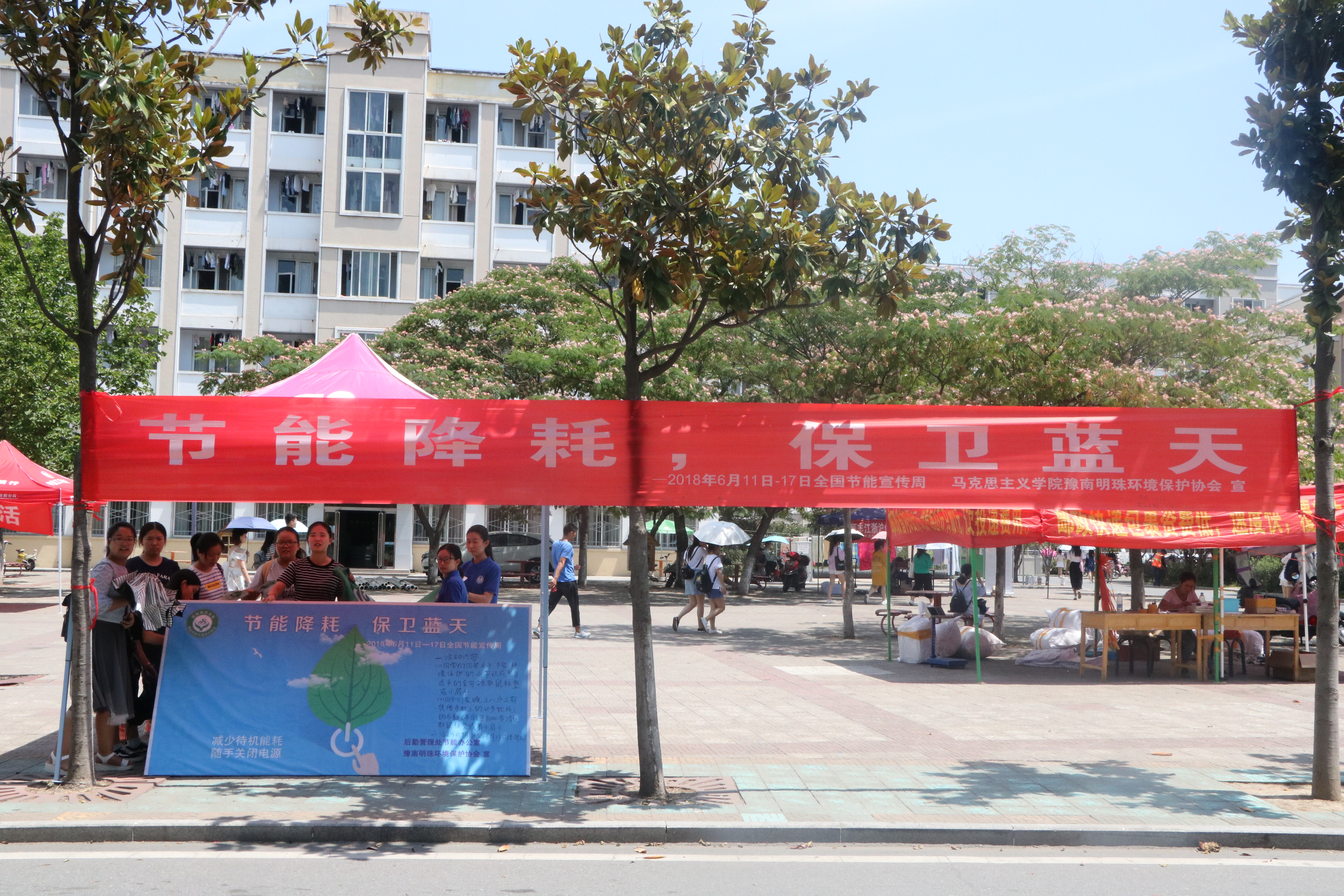 为全面提高我校师生节能意识,营造“绿色、低碳”的校园氛围,6月13日,由后勤管理处节能办公室和豫南明珠环境保护协会联合举办的“2018世界低碳日”宣传活动在八餐小广场顺利开展。活动赢得了学生的广泛参与。