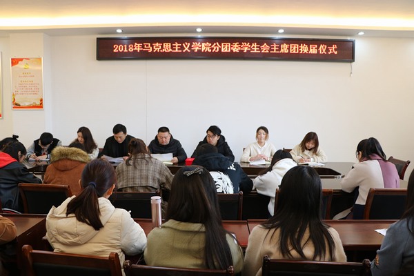 为保证学生会工作的传承性,促进各项工作的高效运转,3月21日上午,永利集团官网2018年分团委学生会主席团换届仪式在社科楼323会议室举行。永利集团官网党委副书记何晓坚、分团委书记曹栋,新老两届学生会主席团成员以及学生会各部门、社团、班级负责人共同参加了此次会议。会议由高揽月主持。