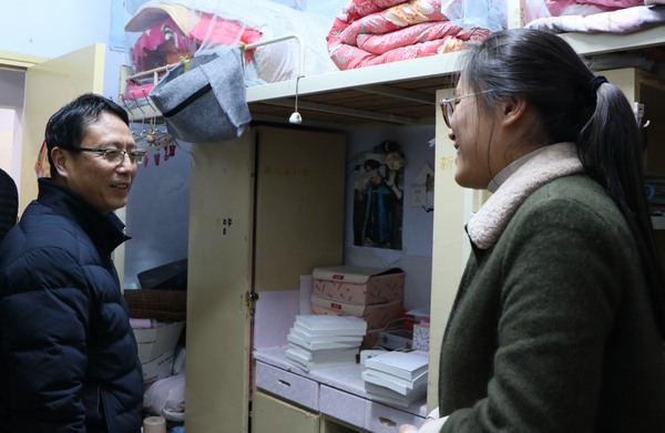 为了解学生返校情况,3月4日下午,永利集团官网党委书记唐国战、党委副书记徐永新、何晓坚在专职辅导员孙绪曙、曹栋、曹菁菁的陪同下深入学生宿舍慰问返校学生。