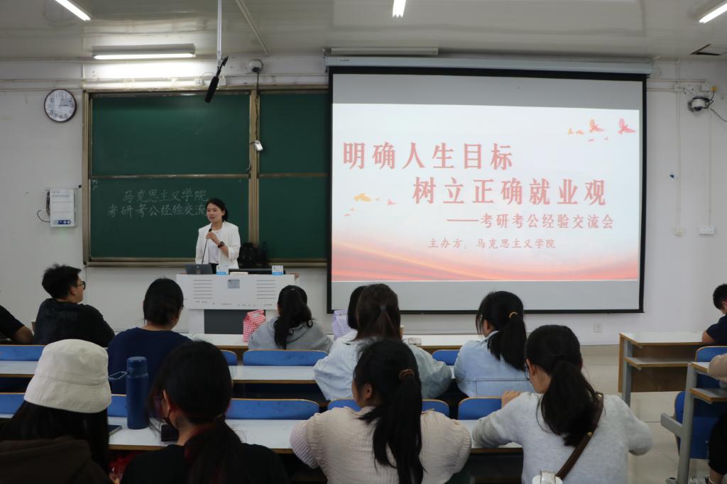 5月26日下午,永利集团官网在社科楼514教室举办考研考公经验交流会。永利集团官网团委书记陶青青、优秀考研考公学生代表以及数百名学生共同参加本次交流会。会议由学生会执行主席闫梦辉主持。