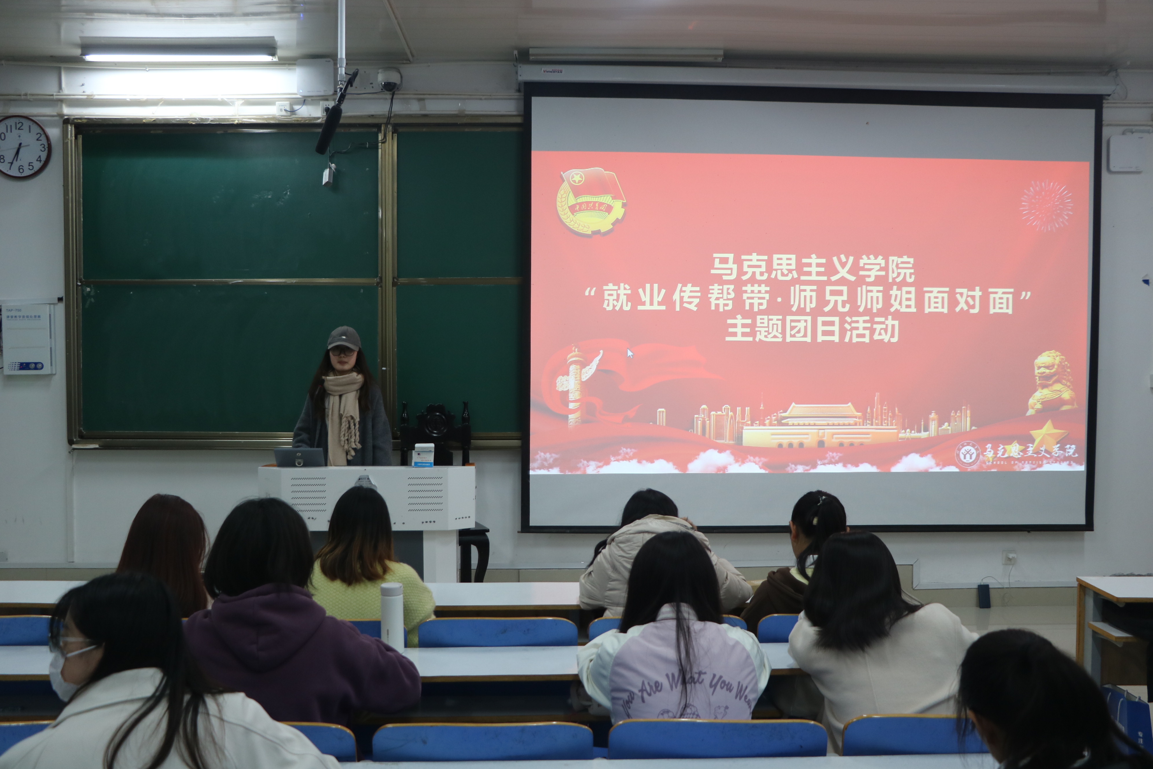 为强化就业育人实效,促进永利集团官网毕业生高质量就业,11月17日下午,永利集团官网团委联合考研服务社在社科楼515教室举办“就业传帮带·师兄师姐面对面”主题团日活动。本次活动由团支部副书记杨可主持,永利集团官网学子共同参加。