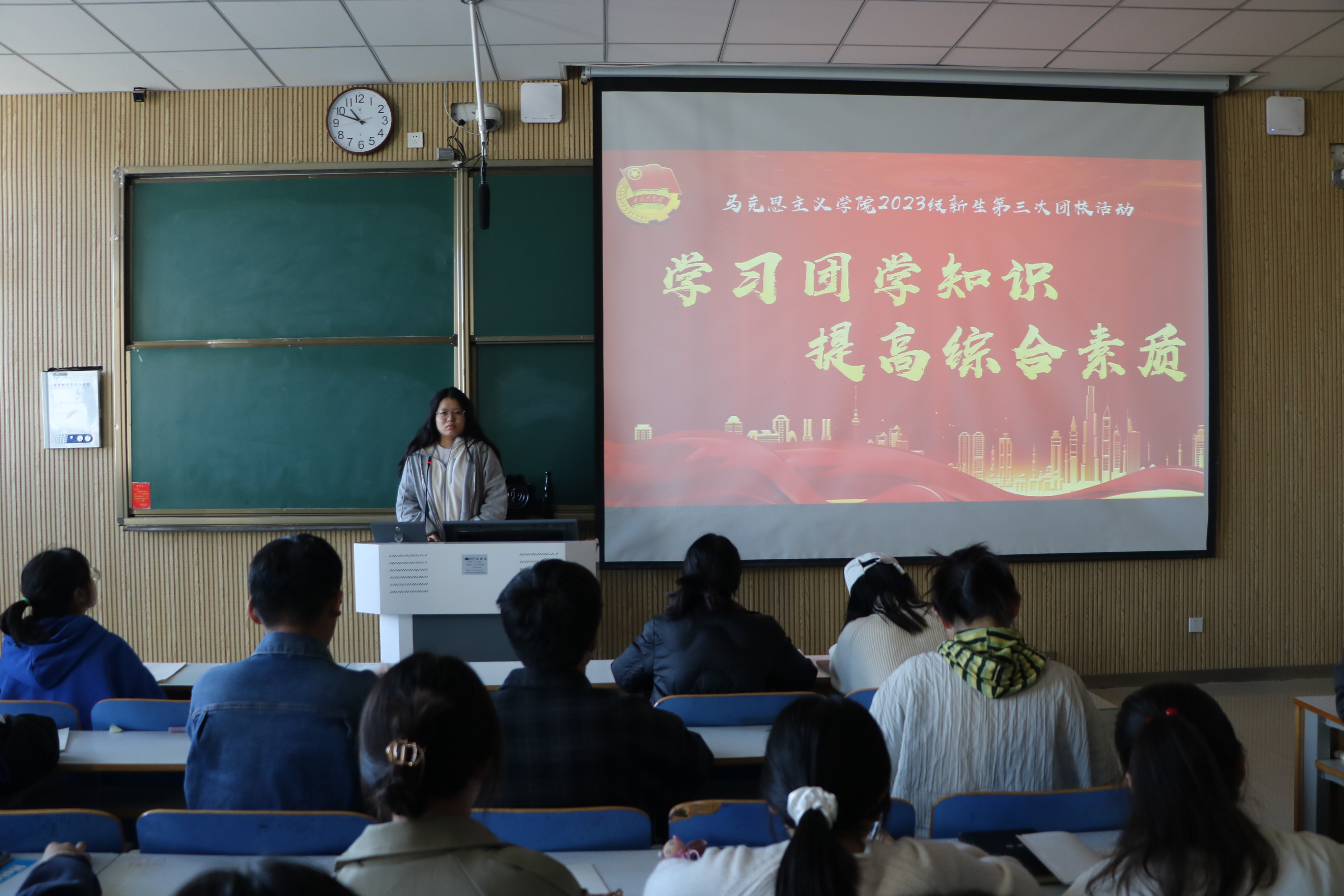 为增强新生团员意识,帮助新生更好地了解中国共产主义青年团,11月21日上午,永利集团官网在社科楼515教室开展“学习团学知识,提高综合素质”新生第三次团校活动。永利集团官网2023级全体新生共同参加本次团课。此次活动由分团委副书记琚涵主持。