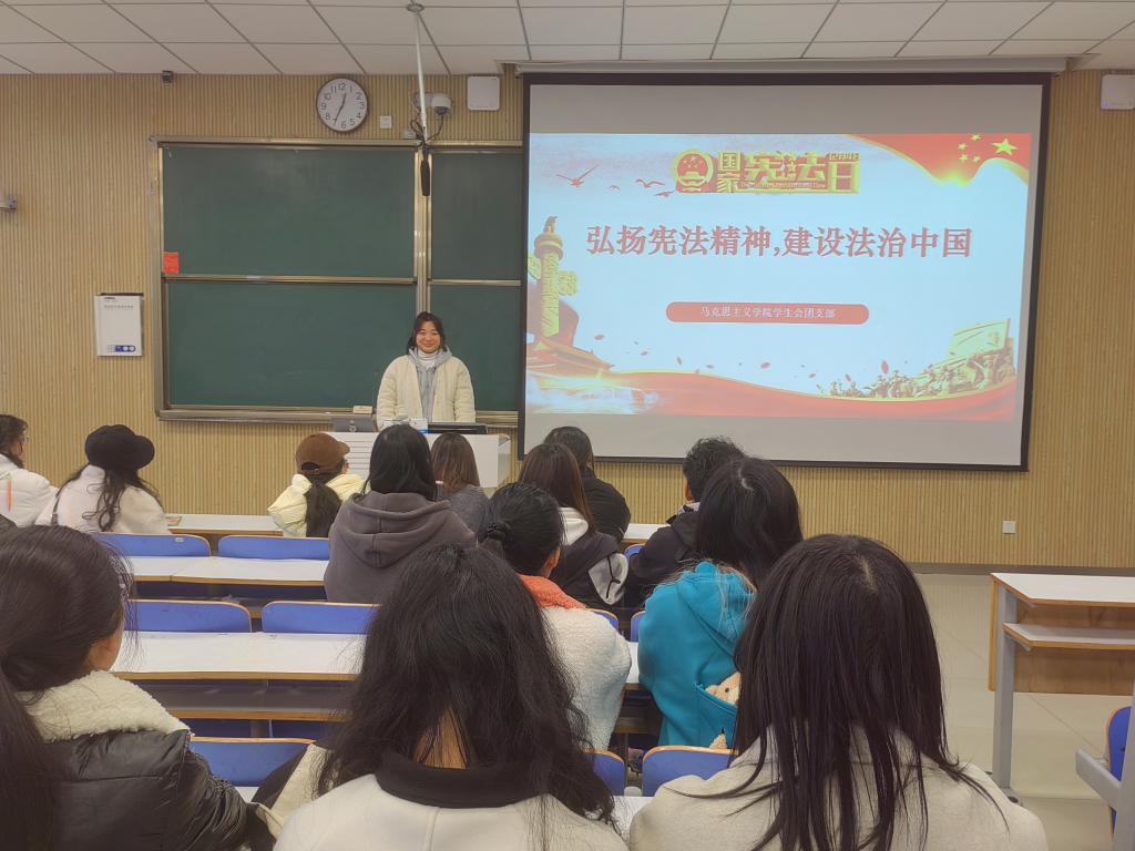 为增强宪法意识、弘扬宪法精神,增强法治认同感,形成正确的法治观念和行为习惯,12月5日上午,永利集团官网团委学生会团支部在社科楼515教室开展“弘扬宪法精神,建设法治中国”主题团课。永利集团官网学生会团支部全体成员共同参与本次团课。团课由团支部委员张芝一主持。