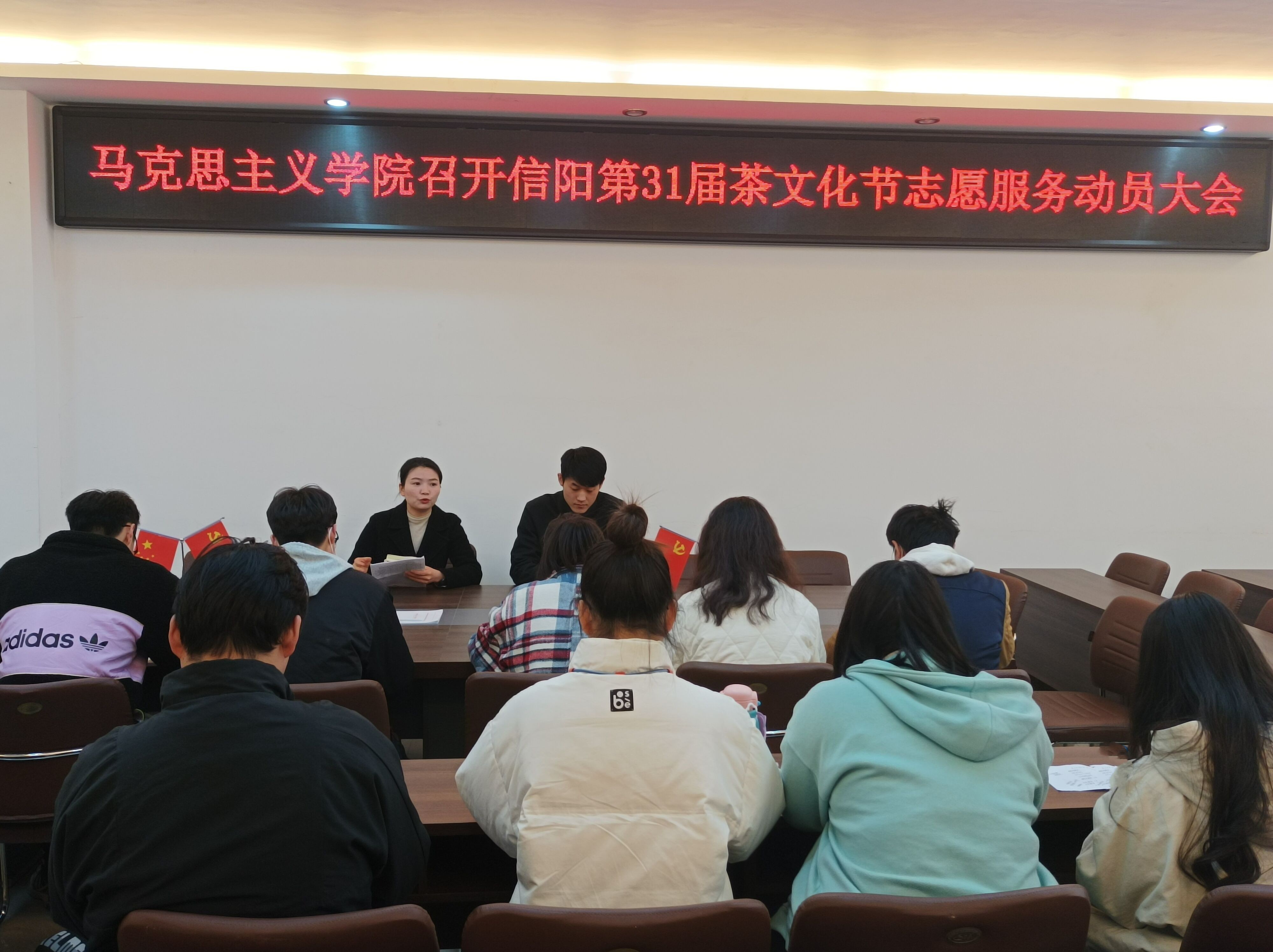 为弘扬青年“奉献、友爱、互助、进步”的志愿服务精神,3月16日上午,永利集团官网在社科楼323会议室召开信阳第31届茶文化节志愿服务动员大会。永利集团官网团委书记陶青青、辅导员沈海蓄、主席团成员及各班团支书共同参与本次会议。会议由陶青青主持。